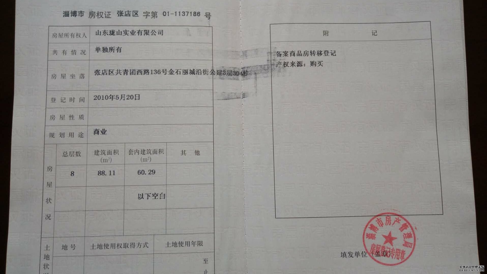 1、金石丽城商品房不包含室内家具及物品;博山区五岭路营业房,无房产证、无土地使用权证;博山区新泰山花园小区沿街商品房,为毛坯房,无房产证、无土地使用权证。